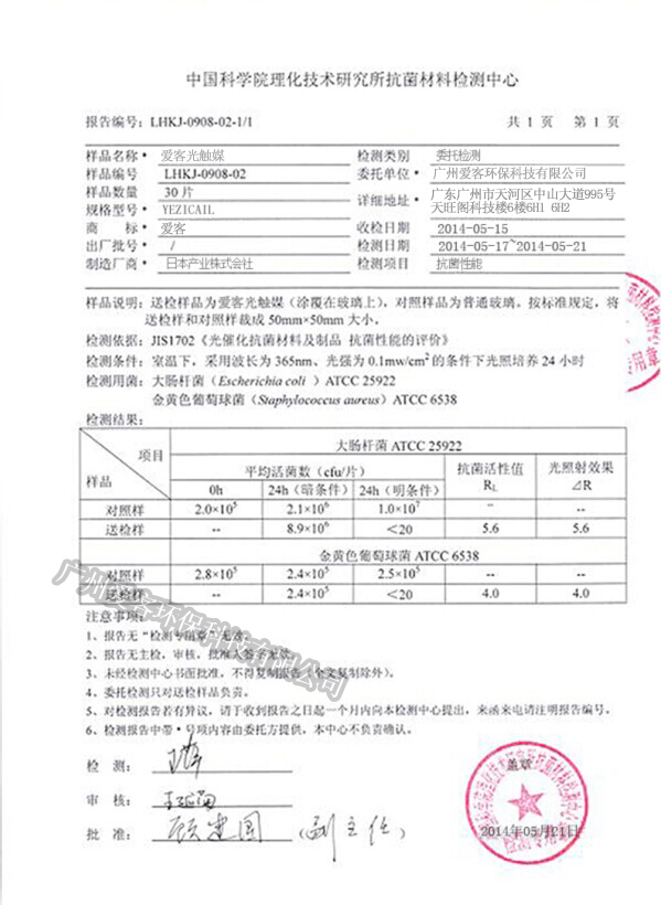 光觸媒纖維抗菌性能檢測